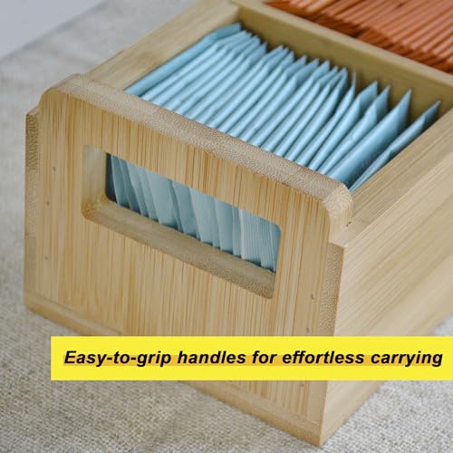 - مادة الخشب الطبيعي - المتانة والاستدامة أمران أساسيان. صُنع صندوق تنظيم الشاي لدينا من خشب البامبو الصلب. يتميز بمظهر راقٍ وفخم لأنه مصنوع يدويًا بنسبة 100% وبخبرة احترافية عالية.