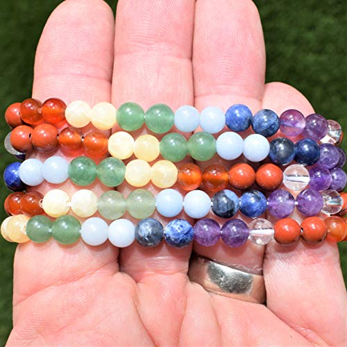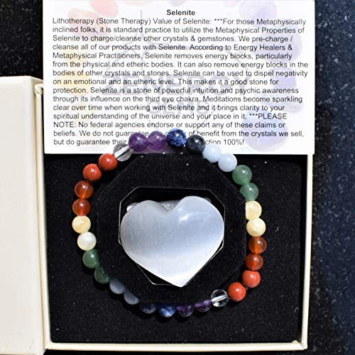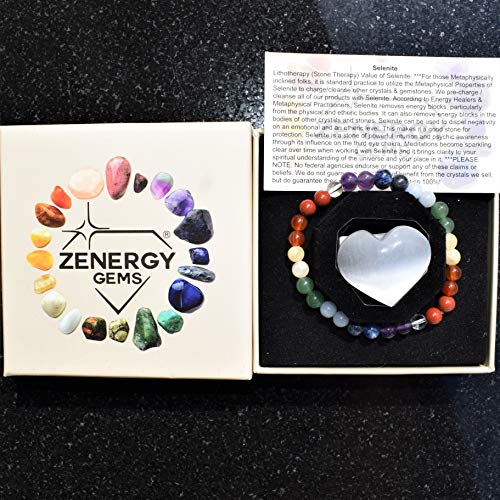 Zenergy Gems - سوار من خرز الاحجار الكريمة والكريستال الطبيعية المشحونة 6 ملم + قلب السيلينيت لشحن الطاقة الايجابية للنساء