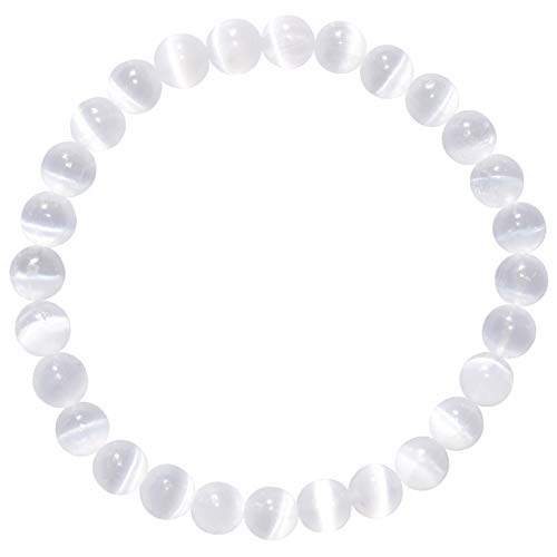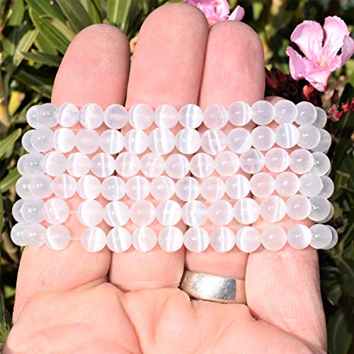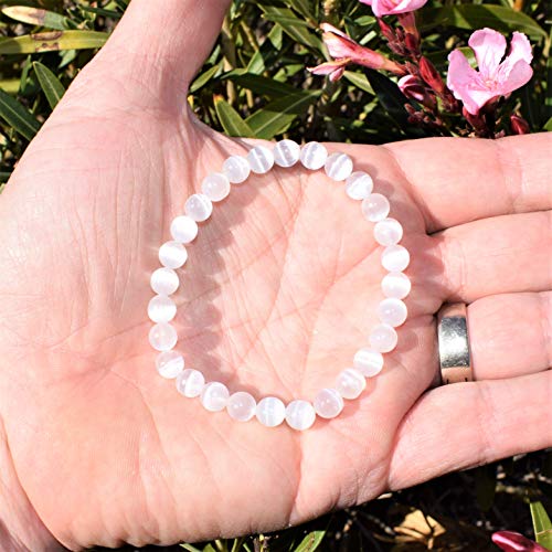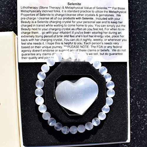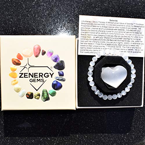 Zenergy Gems - سوار من خرز الاحجار الكريمة والكريستال الطبيعية المشحونة 6 ملم + قلب السيلينيت لشحن الطاقة الايجابية للنساء