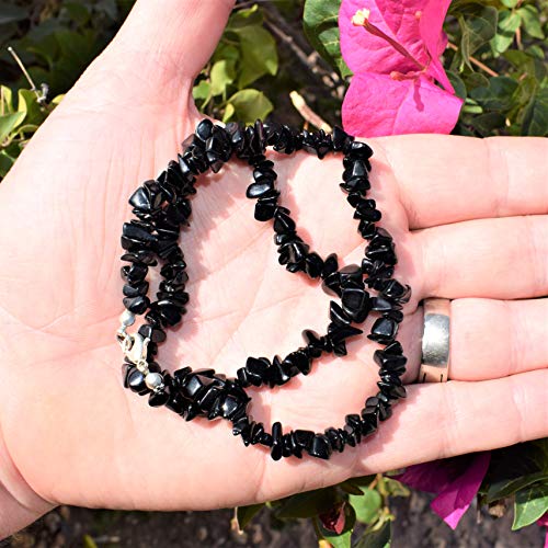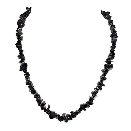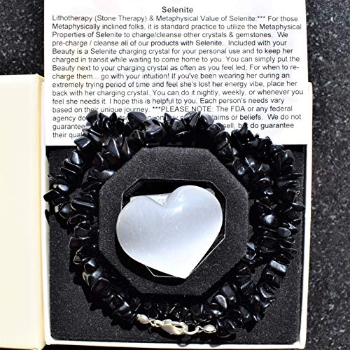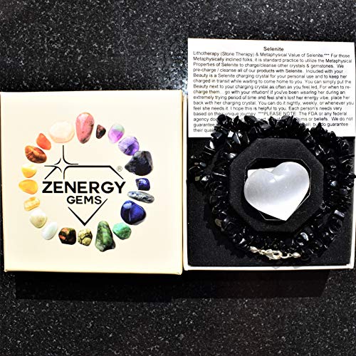 Zenergy Gems - عقد بحجر اونيكس طبيعي اسود كريستالي مصقول مع حجر سيلينيت على شكل قلب لشحن الطاقة من زينيرجي جيمز 18 بوصة للجنسين - أطفال للنساء للبالغين الجنسين للرجال
