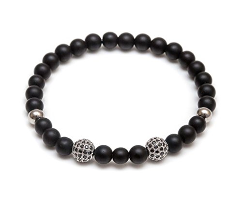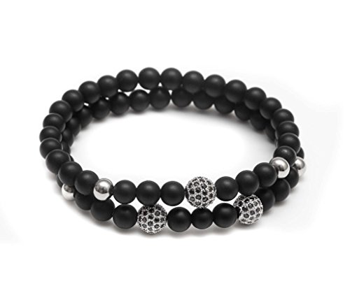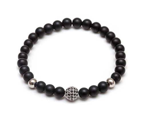 generic - سوار مطاطي مطرز بالخرز من زينجر جوليري باريس - 6 ملم اسود غير لامع، ستيل مطلي بالذهب الابيض عيار 18 قيراط، مرن