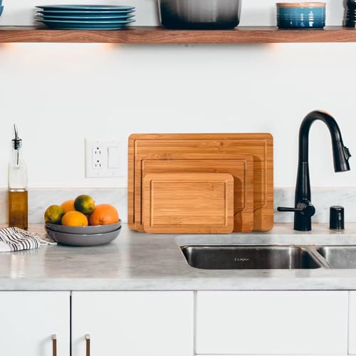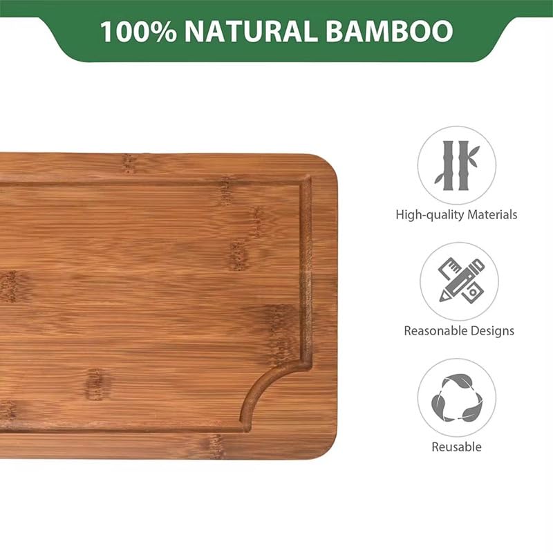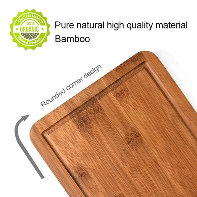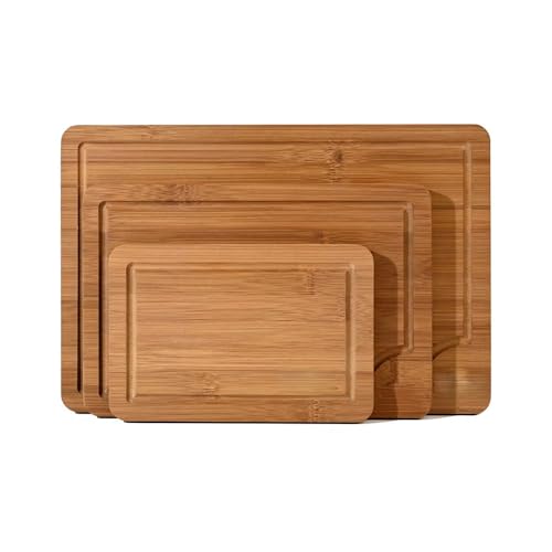 ZENITHOME - مجموعة ألواح تقطيع كبيرة من البامبو، مكعبات عضوية متينة للمطبخ وإعداد الوجبات والتقطيع والتقديم، صديقة للبيئة ولا تتلف السكين مع فجوات للعصارة من زينيت هوم (3 قطع)