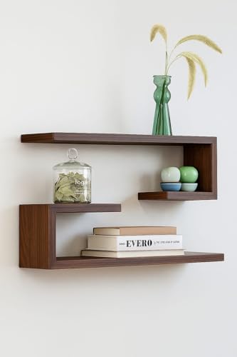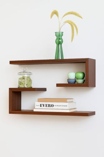 ZenZest - 2 رف حائط متعدد الوظائف ورف تخزين من زينزيست | رف كتب مطلي بالخشب الهندسي متعدد الاغراض لديكور المنزل ومنظم عرض لغرفة المعيشة وغرفة النوم (بني)