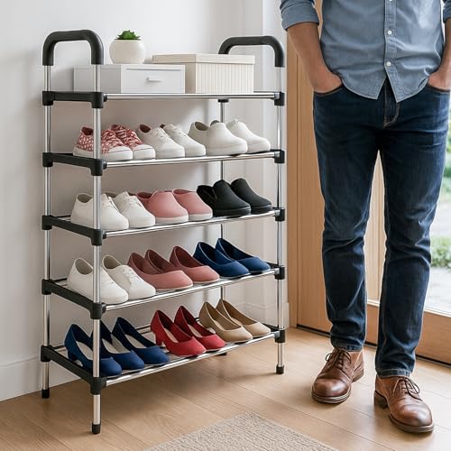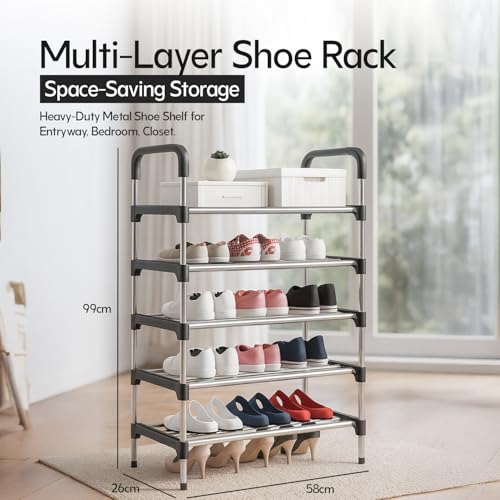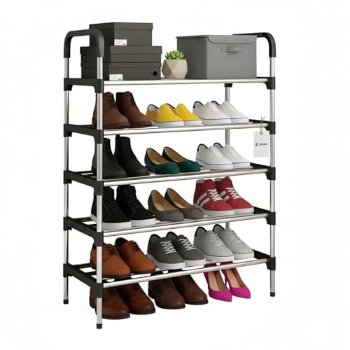 ZEONA - منظم احذية متعدد الطبقات من الستيل المتين من زيونا - تصميم عمودي صغير للمساحات الصغيرة، رف احذية معدني شديد التحمل للمدخل وغرفة النوم والخزانة، سهل التجميع وموفر للمساحة