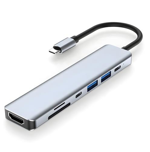 Generic - محول ZERO الإلكتروني 7 في 1 Type-C الى HDTV + منفذين USB + قارئ TF + قارئ SD - متوافق مع أجهزة الكمبيوتر والهواتف والأجهزة اللوحية
