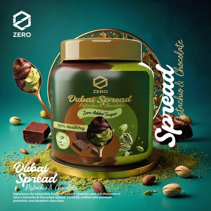 - شوكولاتة وبيستاشيو دبي سبريد صحية بنسبة 100% مع نسبة عالية من البروتين من زيرو، 300 جرام