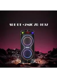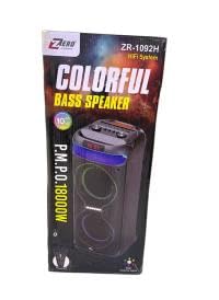 Generic - مضخم صوت زيرو ببطارية مدمجة ومجهز بتقنية بلوتوث ومنفذ بطاقة ذاكرة ومنفذ USB ومنفذ ميكروفون وميكروفون ونموذج إضاءة ار جي بي- ZR-1092، أسود