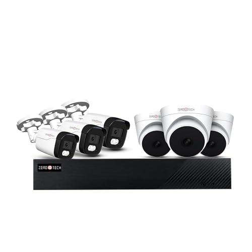 Zero Trade - طقم كاميرات زيرو تيك بدقة 2 ميجابكسل للداخل والخارج مكون من 6 قطع مع مسجل 8 قنوات