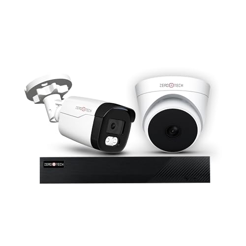 Zero Trade - كاميرات مراقبة داخلية وخارجية بدقة 2 ميجابكسل من زيرو تيك، مجموعة من قطعتين مع مسجل 4 قنوات