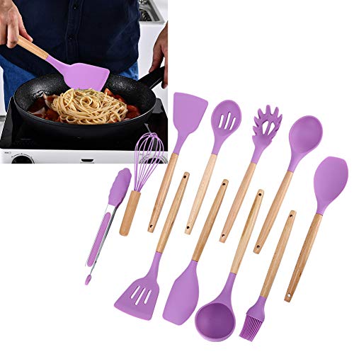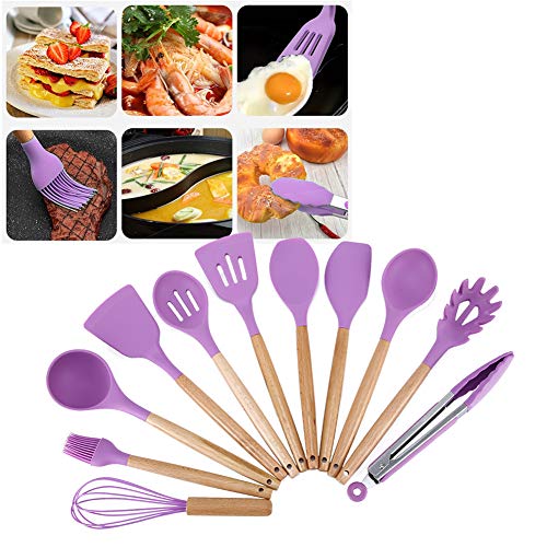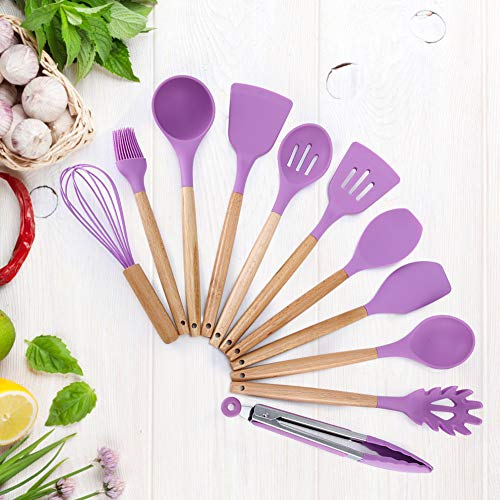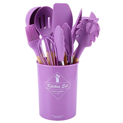 Zerodis - مجموعة ادوات مطبخ منزلية من السيليكون مكونة من 12 قطعة، تشمل معلقة سباتولا ومقشطة ومضرب بيض ومعلقة سباتولا غير لاصقة للمطبخ والمنزل، ارجواني