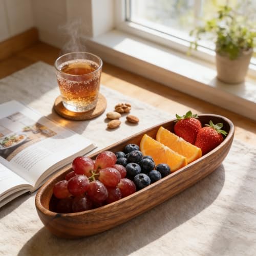 Zerodis - بولة سلطة خشب كبيرة متعددة الأغراض، بولة مصنوعة يدويًا من مادة سميكة على شكل قارب، بولة سلطة مريحة لتناول الطعام والخبز والفواكه والوجبات الخفيفة والحلوى من زيروديس (مقاس كبير L)