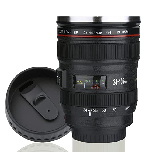 Zerodis - كوب معزول من الستانلس ستيل بتصميم مبتكر على شكل عدسة كاميرا، زجاجة مياه حرارية للسفر، حافظة محمولة للشاي والقهوة (لون اسود 5)، من زيروديس