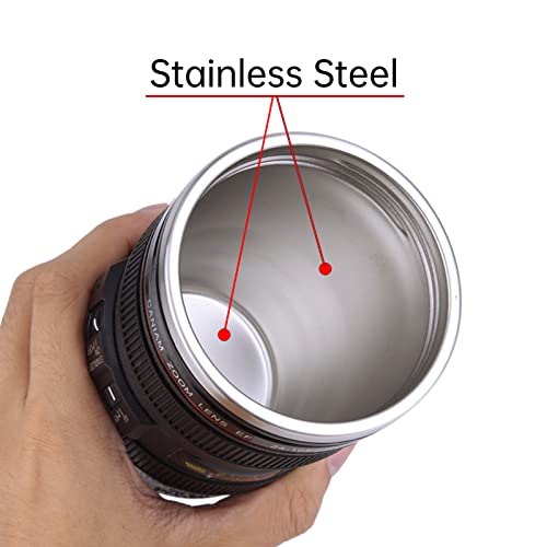 - ♥ مج بتصميم عدسة كاميرا مصنوع من الستانلس ستيل كوب القهوة بتصميم عدسة الكاميرا مصنوع من الستانلس ستيل عالي الجودة وبلاستيك ايه بي اس، وهو متين ومقاوم للتآكل وصديق للبيئة.