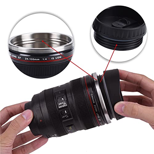 - ♥ يبدو وكأنه عدسة كاميرا واقعية: تصميم على شكل عدسة كاميرا يحاكي عدسة اس ال ار الفعلية، نابض بالحياة ومبتكر. يبدو كوب القهوة بعدسة الكاميرا مثل عدسة الكاميرا الأصلية، مثالي للمصورين أو حتى غير المصورين.