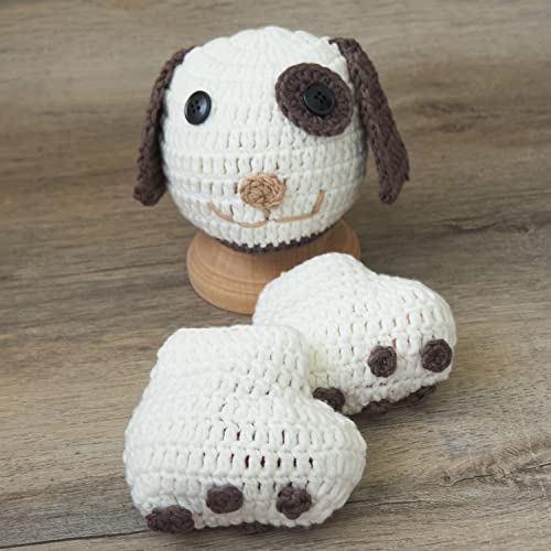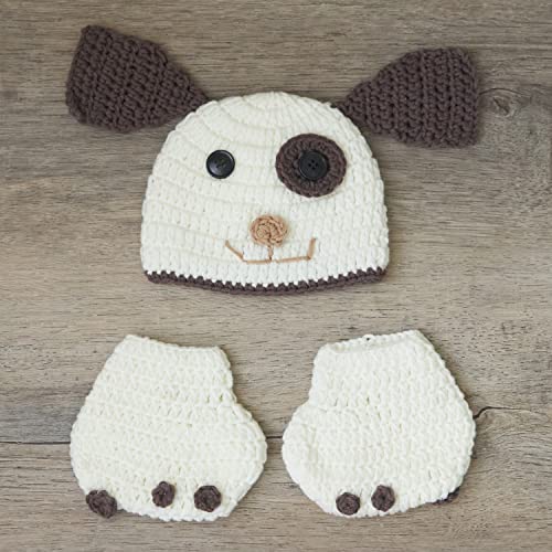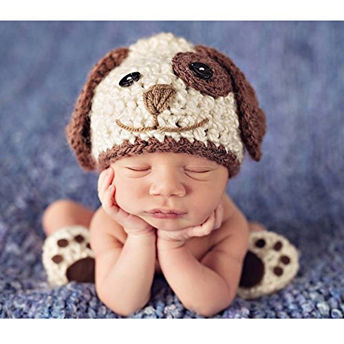 Zeroest - مستلزمات تصوير للأطفال ملابس كروشيه للتصوير الفوتوغرافي الرضع والأولاد والبنات أحذية قبعات جرو محبوكة بيج