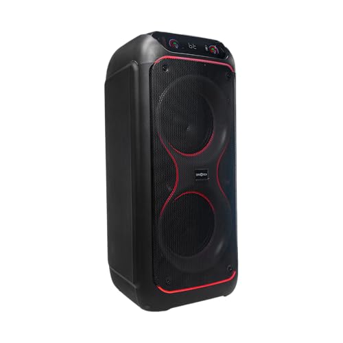 ZEROTECH - مكبر صوت بلوتوث للحفلات، اسود، مكبرات صوت مزدوجة 8 انش، 50 واط × 2، اضاءة LED، تحكم رقمي، راديو اف ام، منافذ ادخال متعددة