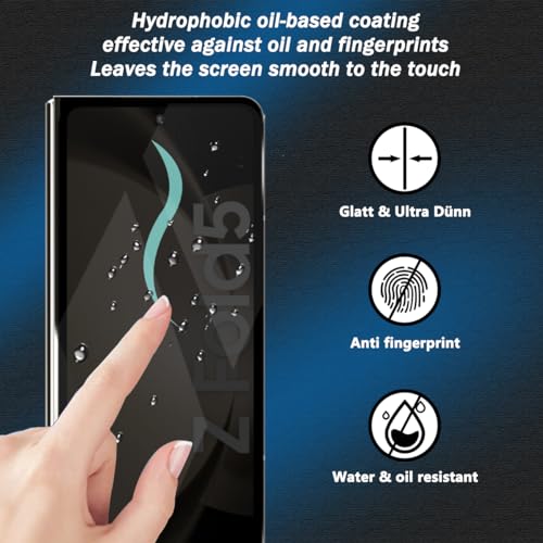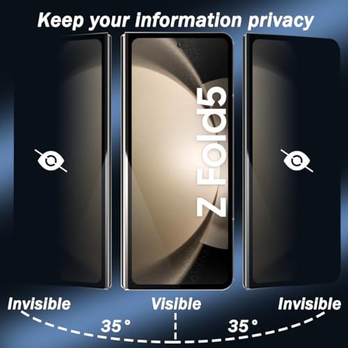 Zerrshoo - شاشة حماية من الزجاج المقوى صلابة 9 ومضادة للتجسس تحمي الخصوصية لموبايل سامسونج جالاكسي زد فولد 5 من زيرشو، قطعة واحدة