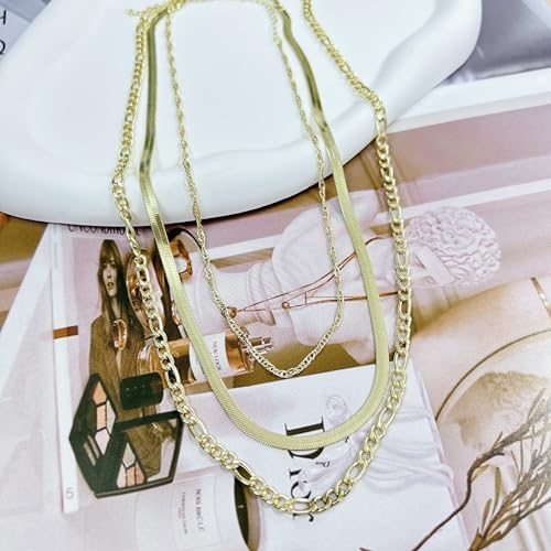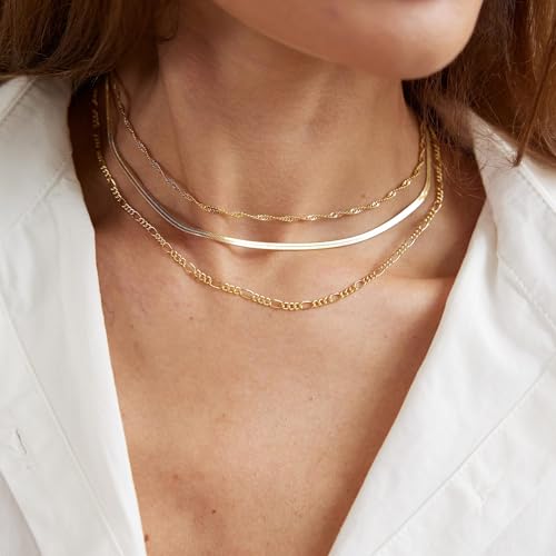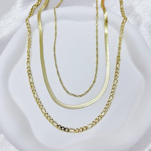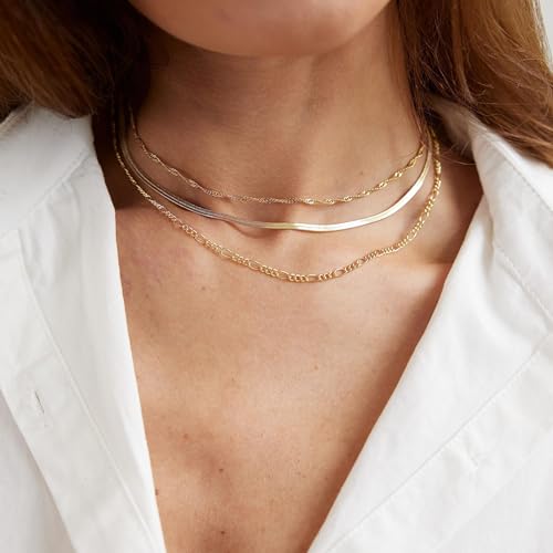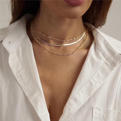 ZETSHION - زدتشن قلادة سلسلة بتصميم ثعبان بتصميم مشبك ورق للنساء والفتيات مطلية بالذهب عيار 14 قيراط انيقة وبسيطة ومكتنزة بطبقة رقيقة، مجموعات قلادات عصرية قابلة للتعديل متعددة الطبقات، هدايا مجوهرات