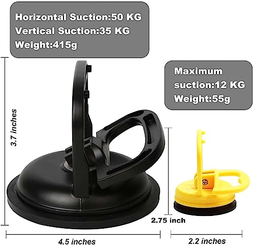 - قوة شفط قوية: يمكن لساحب الانبعاجات مقاس 4.7 انش رفع 176 باوند من المنتج. كوب شفط 2.2 انش يرفع أكثر من 25 باوند من المنتج