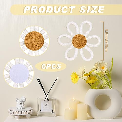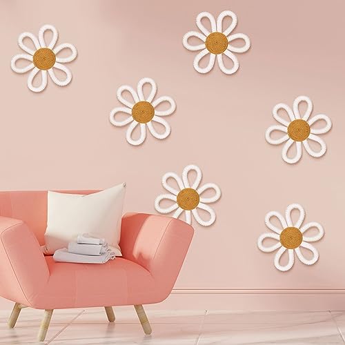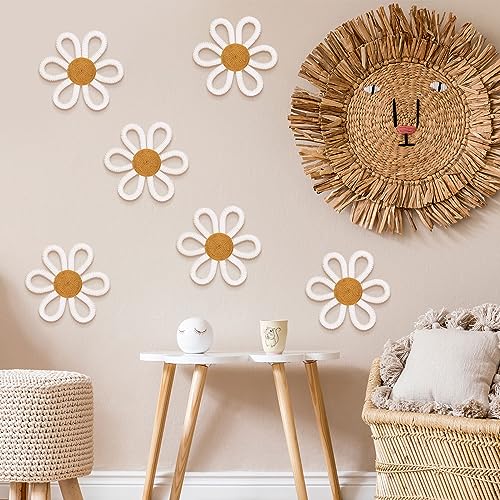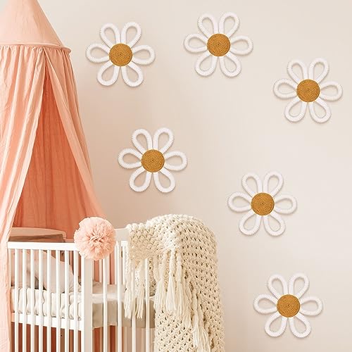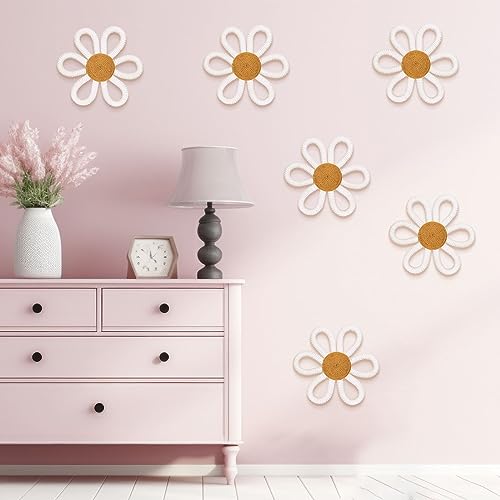Zeyune - زيون 6 قطع ديكور حائط بنمط زهرة الاقحوان بنمط بوهو للبنات من الروطان بتصميم بوهيمي بوهيمي بوهو، مكرمية منسوجة للتعليق على الحائط للمنزل والاطفال وسكن الاطفال (ابيض)