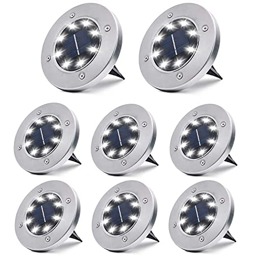 ZFITEI - زفيتي مصابيح تعمل بالطاقة الشمسية للحديقة الخارجية، سطح السفينة - 8 LED، ارضية خارجية للمناظر الطبيعية، الممشى، العشب، السلالم، اسوار، أكريلونيتريل بوتادين ستايرين، أبيض .