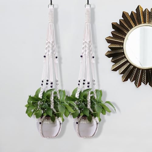 Zfseyuh - علّاقة لأصيص نباتات معلقة من المكرمية، دعامات أصيص نباتات داخلية من القطن المنسوج للاستخدام الداخلي والخارجي من Zfseyuh - 83 سم