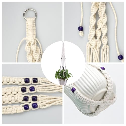 - المادة: مصنوعة يدويًا على يد حرفيين موهوبين من حبل من القطن الخالص. تتميز بتصميم بسيط وراقي، كما أنها متينة ومناسب لأصص النباتات المختلفة في الألوان والأنماط والأشكال. لتعليق أصيص الزهور. مثالية لعرض النباتات الجميلة.