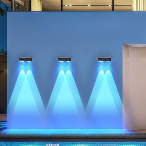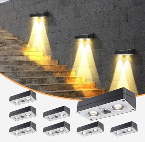 ZFWDSY - مصابيح سياج طاقة شمسية 8 قطع من زد اف دبليو دي اس واي، 50 لومن للسياج الخارجي مع 12 وضع، مصابيح ليد متوهجة بألوان الفضاء اللوني ار جي بي ضد الماء، مصابيح للفناء امامي وخلفي والسطح والسياج والدرابزين.