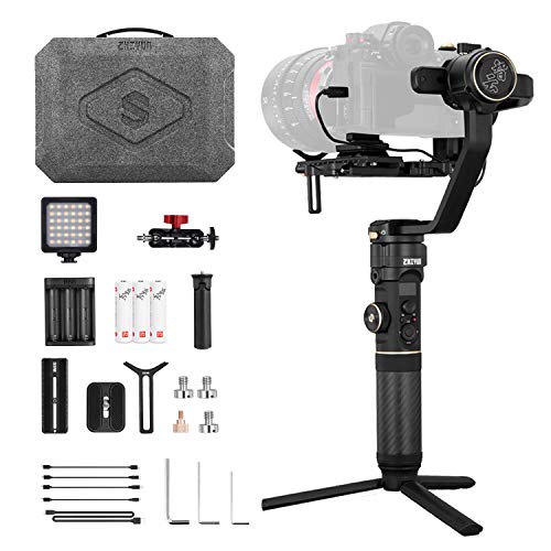 zhi yun - حامل تثبيت جيمبال ثلاثي المحاور 2S لكاميرات رقمية ذات عدسة احادية عاكسة وغير من زي يون كاميرا فيديو احترافي مطور بخوارزمية مع اضاءة LED متوافق سوني ونيكون وكانون وباناسونيك رمادي