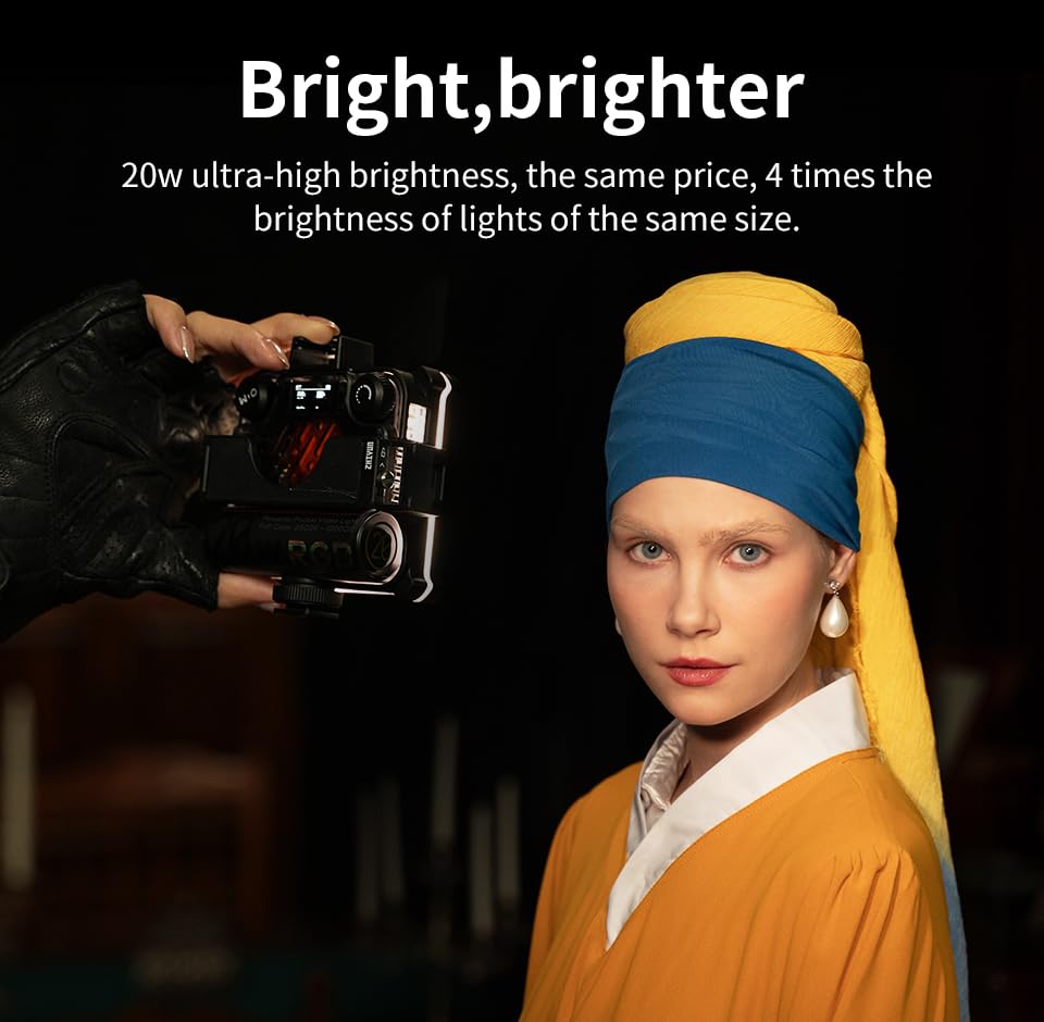 ZHIYUN - زيون اضاءة مستمرة M20 كومبو LED للتصوير الفوتوغرافي 20 واط ثنائية اللون 2700-6500 كلفن مع موزع مغناطيسي لباب الحظيرة CRI 95+ TLCI 97+ من فيفيراي