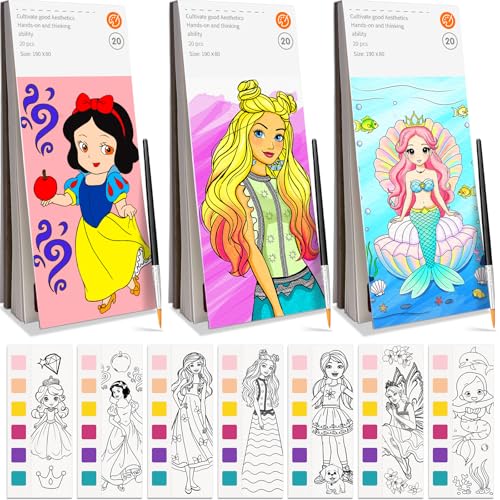 ZHOC - كتب تلوين بالألوان المائية للأطفال خالية من الفوضى بحجم الجيب للأطفال من سن 3 و4 و5 و6 و7 و8 فما فوق مناسبة لأنشطة الفنون والحرف اليدوية للأولاد والبنات من زوك، مجموعة من 3 قطع