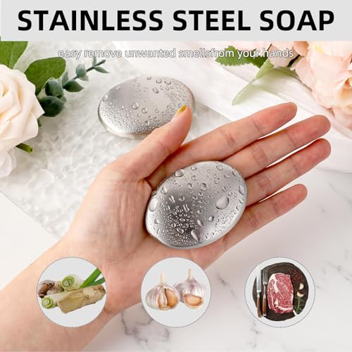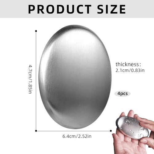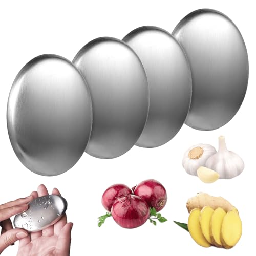 ZhongShuang - صابونة من الفولاذ المقاوم للصدأ، لوح صابون معدني، أداة لإزالة وامتصاص الروائح الكريهة مثل البصل والسمك والثوم من اليدين والبشرة، أداة من أدوات المطبخ، عبوة من 4 قطع