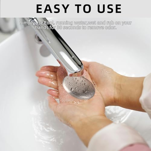 - تفاعل فيزيائي ساحر: عند امتزاج الهواء بجزيئات الماء مع القطعة المصنوعة من الفولاذ المقاوم للصدأ، يبدأ تأثيرها في إزالة الروائح عند فركها باليدين. يعمل لوح الصابون المصنوع من الفولاذ المقاوم للصدأ على تحليل جزيئات الروائح وتحويلها إلى مواد عديمة الرائحة.