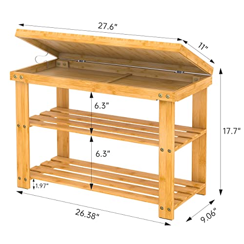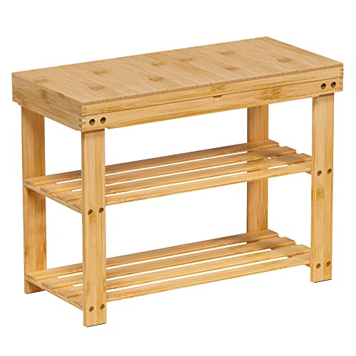 ZHUOYUE - مقعد أحذية بامبو برف تخزين للمدخل من زوويو، منظم مساحة صغيرة للاستخدام الداخلي والخارجي