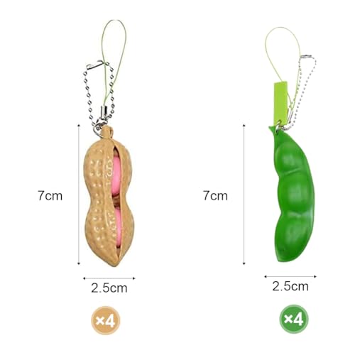 - مجموعة ألعاب تخفيف التوتر: سوف تحصل على 4 ألعاب ضغط على شكل بازلاء و4 ألعاب ضغط على شكل فول سوداني، هناك 8 قطع، اضغط على حبة صغيرة ولطيفة، شكل فول سوداني واقعي.