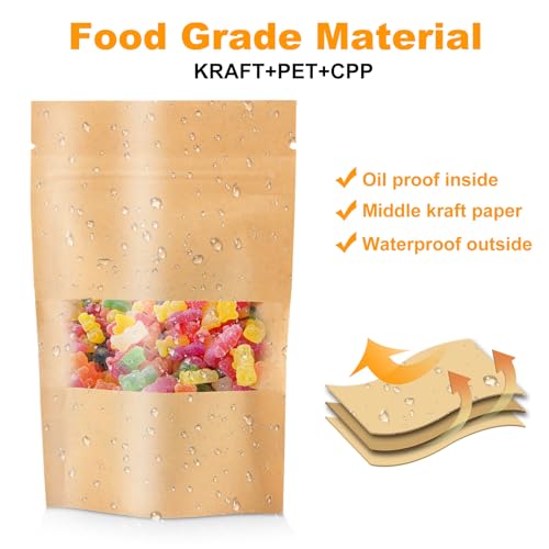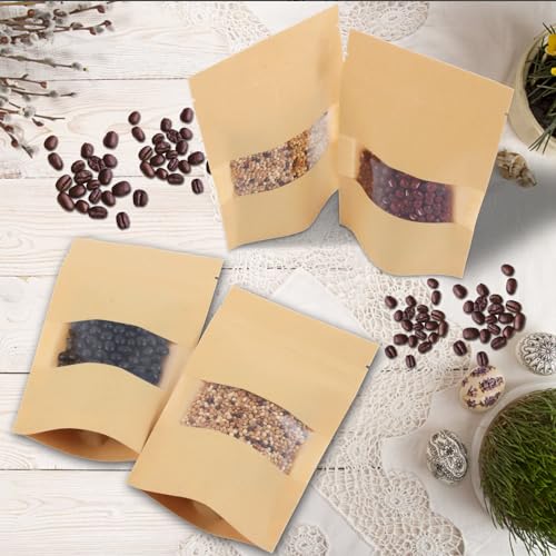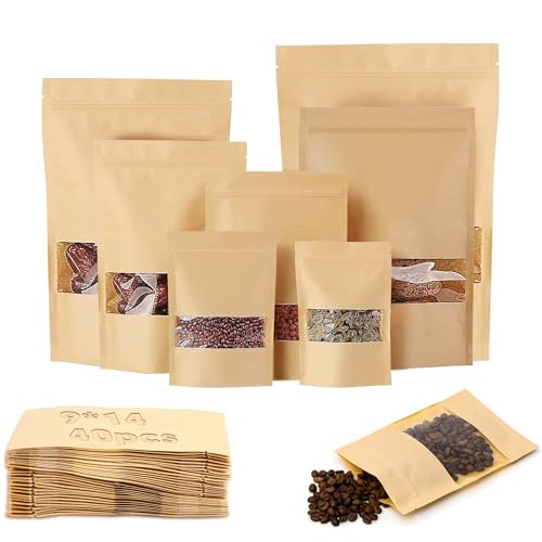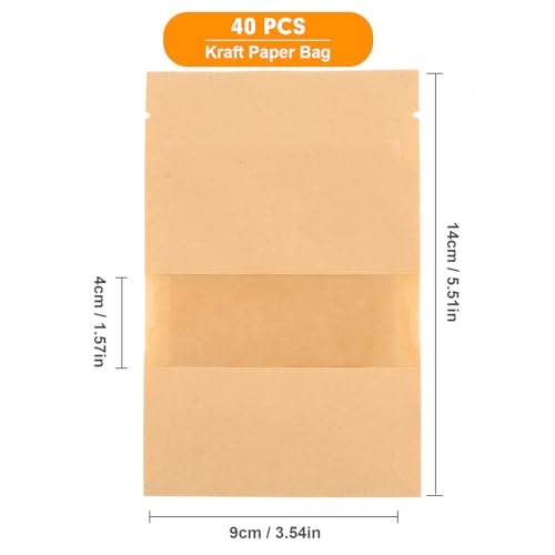 Ziamzra - عبوة من 40 كيس طعام كرافت مقاس 9 × 14 سم قابل لاعادة الاستخدام بسوستة مع نافذة شفافة لحفظ الطعام والمكسرات وحبوب القهوة من زيامزرا