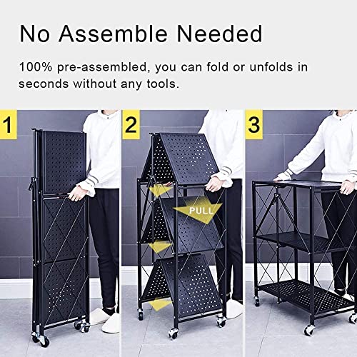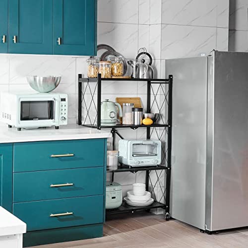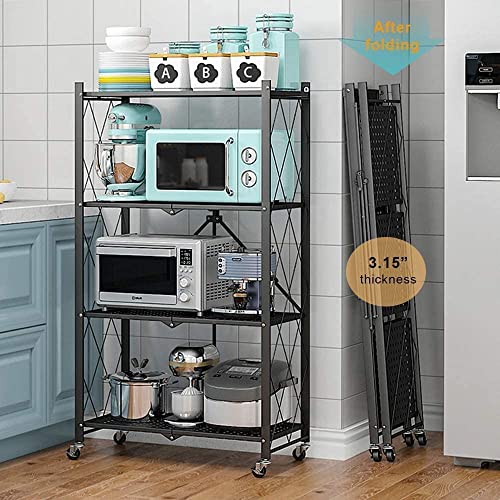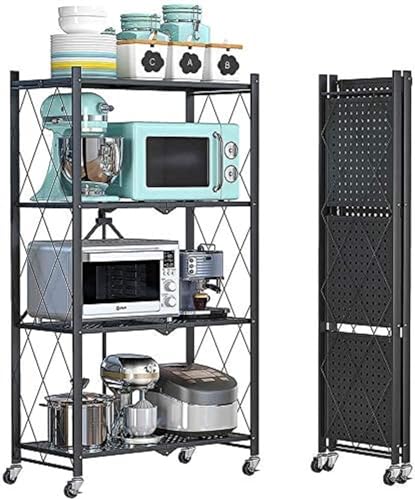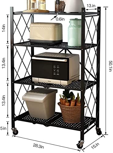 ZICCO - وحدة رفوف تخزين قابلة للطي من 4 طبقات مع عجلات متعددة الطبقات رف معدني للعرض للجراج والمطبخ وخزانة المؤن وغسيل الملابس زيكو هوم براند لون أسود مقاس 70 سم× 34 1.27 متر