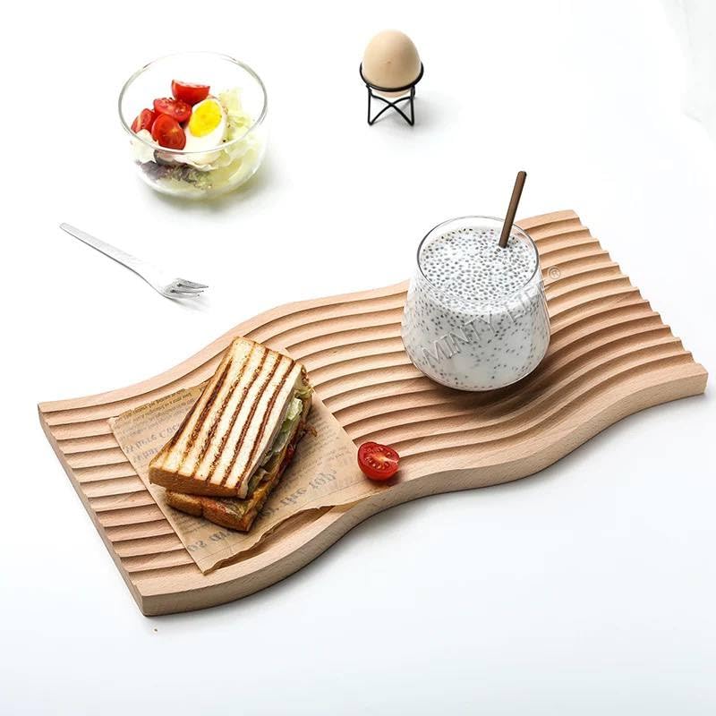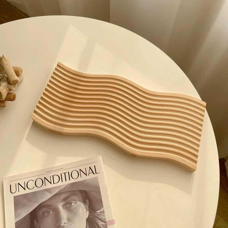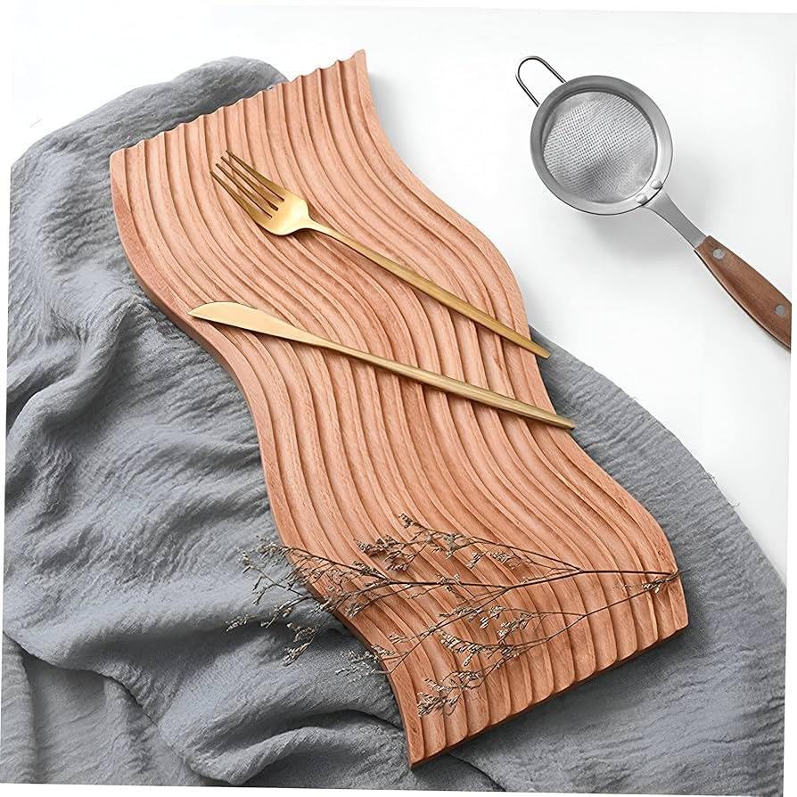 Generic - طقم بلانشة وكوستر وصينية خشب ديكور شكل متعرج – تصميم عصري أنيق لتقديم الطعام والمشروبات بلمسة فنية مميزة AR