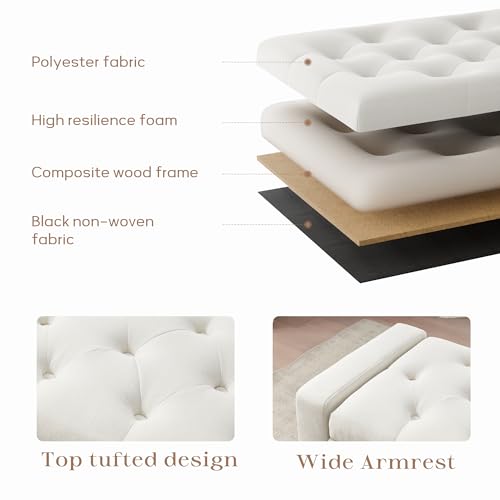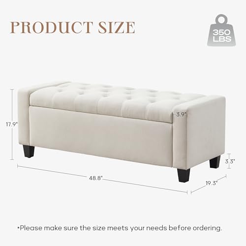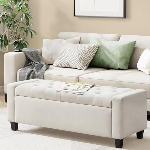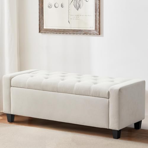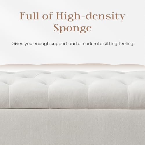 Zihanhome - مقعد عثماني مع مساحة تخزين من زيهان هوم، مقعد عثماني للتخزين مصنوع من القماش مع مفصل، مقعد لغرفة النوم، مقاعد منجدة مع مقعد لغرفة المعيشة والمدخل (بيج)