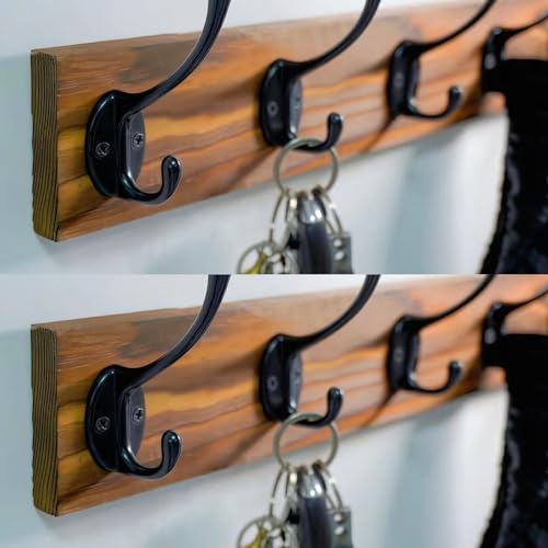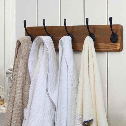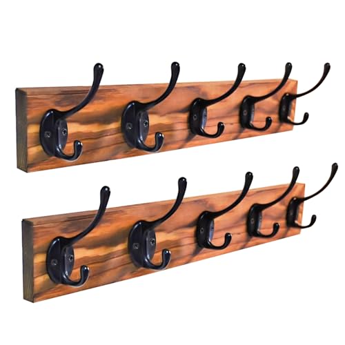 Zihanrm - رف معاطف يثبت على الحائط من زيهانرم - 5 خطافات ثلاثية، رفوف معاطف خشبية شديدة التحمل تثبت على الحائط للملابس والقبعات والجاكيتات، لون ماهوجني، عبوة من قطعتين