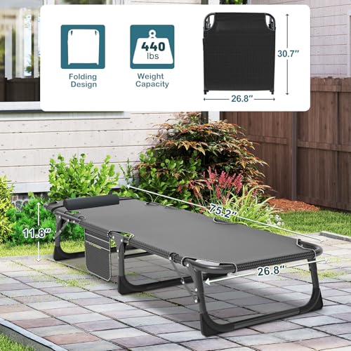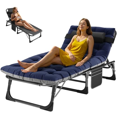 ZIKEBTUY - كرسي استرخاء قابل للطي للحديقة بسعة تحميل 440 باوند مع جيب جانبي ومسند ظهر قابل للتعديل، سرير تخييم محمول للتخييم والمكتب والقيلولة والفناء وحمام السباحة، 190×68×30 سم (ازرق - BK)