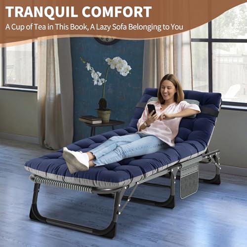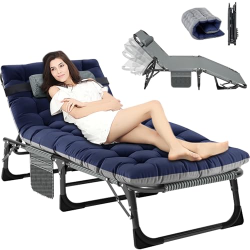 ZIKEBTUY - سرير استرخاء مطوي للحديقة، سرير شمسي قابل للإمالة ومحمول للتخييم والنوم المكتبي والساحات وحمام السباحة، مع جيب جانبي ومسند ظهر قابل للتعديل من زيكبتوي - مقاس 1.9 م × 68 × 28 سم، بقدرة تحمل 199.5 كجم