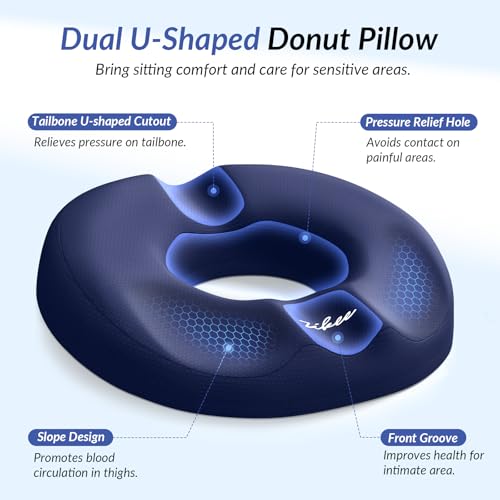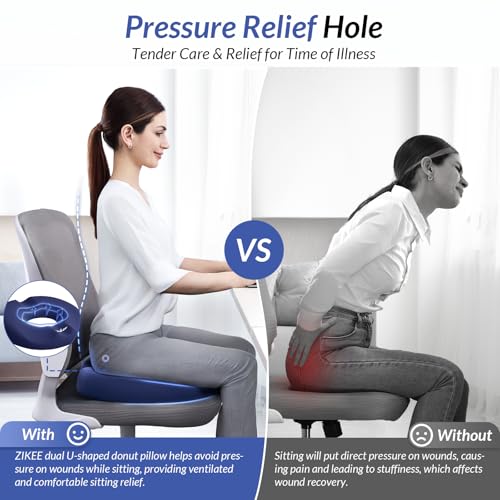 ZIKEE - مخدة على شكل دائرة مزدوجة (U) لآلام العصعص، وسادة للبواسير للجلوس مزودة بفتحة لإراحة مناطق الضغط وتصميم منحدر، مقعد دائري للعصعص ومناسب لتخفيف آلام الجلوس بعد الولادة أو العمليات الجراحية من زيكي