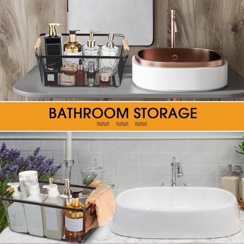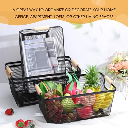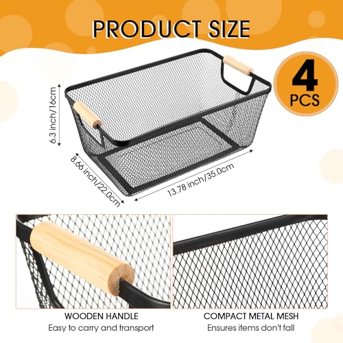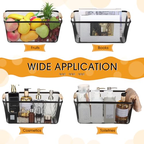 Ziliny - سلة سلكية معدنية بمقابض خشبية، سلال تخزين شبكية من الفولاذ للتنظيم، للمنزل وخزانة المؤن والمطبخ والثلاجة والفواكه والمكياج والوجبات الخفيفة من زدليني، 4 قطع (أسود، كبيرة)