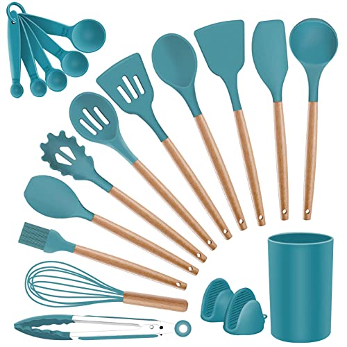 - 19 قطعة من أدوات المطبخ المصنوعة من السيليكون العضوي: يتضمن طقم أدوات الطهي المصنوع من السيليكون 12 قطعة من أدوات الطهي التي تناسب جميع احتياجات الطبخ والخبز. يتضمن طقم أدوات الطهي المصنوع من السيليكون الخاصة بنا ما يلي: ملقط ومضرب وفرشاة دهن وملعقة مشقوقة وملعقة تقليب مشقوقة وأداة تقديم المعكرونة وملعقة وملعقة مسطحة سباتولا وملعقة تقليب الطعام صلبة ومغرفة شوربة. يأتي الطقم أيضًا مع هدية من 5 قطع من ملاعق القياس الصغيرة بأحجام مختلفة باللون الأسود وقطعتين من القفازات الصغيرة المصنوعة من السيليكون.
