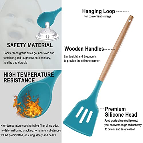 - مقبض خشبي متين لمنع الحروق: طقم أدوات توزيع الطعام هذه تجمع بين الرأس المصنوعة من السيليكون والمقبض الخشبي، مقبض أدوات الطبخ الخشبي مصمم هندسيًا لتوفير قبضة مريحة، غير ناقل للحرارة لحماية يديك ويوفر حماية ضد الصدأ.