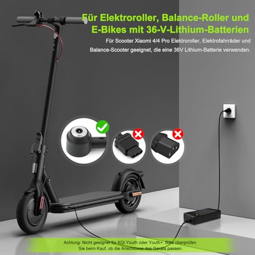 ZIMAOER - شاحن سكوتر كهربائي 42 فولت 2 أمبير 65 واط متوافق مع سكوتر شاومي مي 4/4 برو الكهربائي، بطارية ليثيوم للدراجة الكهربائية والهوفر بورد من زيماور