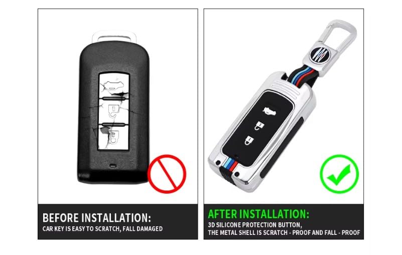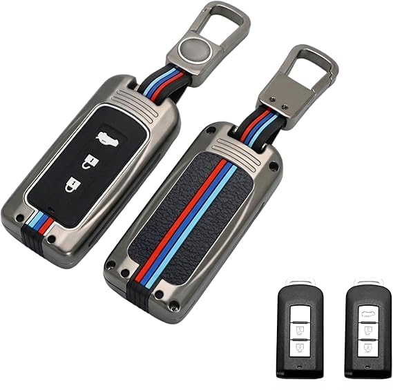 Generic - غطاء مفتاح سيارة من سبائك الزنك – متوافق مع ميتسوبيشي أوتلاندر، لانسر EX، باجيرو سبورت، ASX، كولت، جرانديز وL200 – حافظة مفتاح معدنية فاخرة مع سلسلة مفاتيح – حماية كاملة للمفتاح