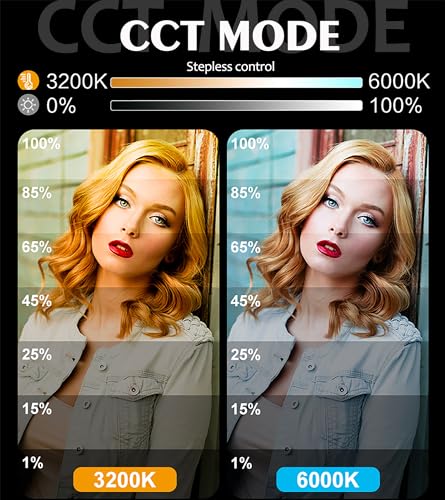 - [مصباح LED مطور قابل للتعتيم]: يحتوي استوديو الصور على 144 خرزة LED وتصرخ 95+، وضعان للألوان - CCT (3200 - 6000 كلفن) وفضاء لوني RGB (25% - 50% - 75% - 100%). أكثر مرونة وثباتًا من مصابيح اي 27 التقليدية الأخرى، فهي تمنحك استوديو صور وإضاءة قابلة للتعتيم.