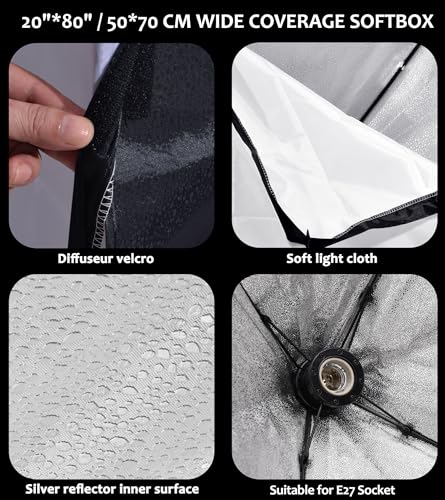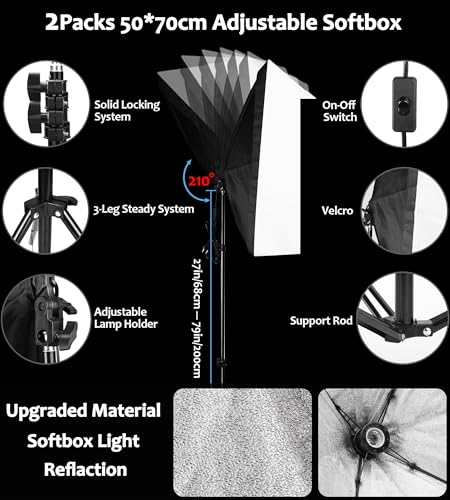 Zingbabu - مجموعة اضاءة سوفت بوكس للتصوير الفوتوغرافي مع صندوق ناعم 2 × 50 × 70 سم | 2 × 150 واط 3200-6000 كلفن E27 RGB معدات اضاءة استوديو الصور من زينجبابو